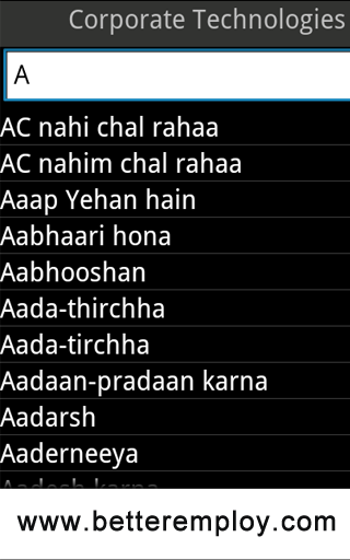 Hindi Learners Application is a Hindi language learning tool. Our efforts and labor in making a very large pool of vocabulary in this application has finally paid off with this well turned out app. The major highlights of this application is that it has the Hindi word in English and the same word written in Hindi language. People who are just starting to learn the language finds it really helpful to learn pronunciation as well as how to write it in Hindi at the same time.
