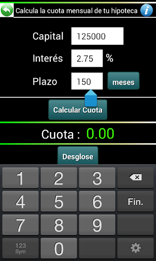 Calcula la cuota mensual de tu hipoteca. También puedes obtener el desglose completo por meses: intereses, capital amortizado y capital pendiente de pago.