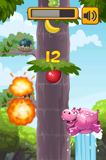 Challenging arcade style game inspired by famous wood chopping game. Become a pink hungry hippo, eat fruits and avoid bombs. Easy to play but hard to master! Make your way to the top of the leaderboard!