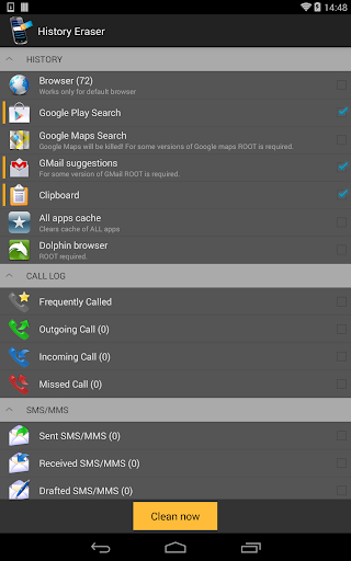 1. Delete Browser History: default browser, Dolphin browser (root) and Chrome (guided)