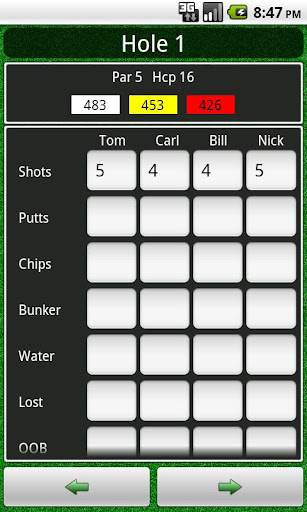 Hole In One Scorecard lets you keep track of your scores and statistics on the golf course.
