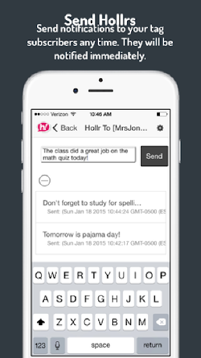 HollrIt is a notification messenger. HollrIt uses your cellular or WiFi connection to message with friends, family, and groups. Switch from Email and SMS to HollrIt and send/receive messages that are most important to you. HollrIt is completely FREE, no hidden costs or in-app purchases.