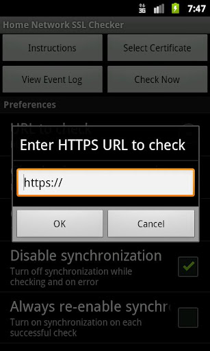 The standard Android applications for mail, calendar, contacts etc. can synchronize against SSL-protected servers but have no option to check their certificate. Basically, it is possible to either check if the certificate is issued by one of the standard (before Android 4.0, not user-editable) CAs, or not check them at all. This is not enough to reliably assert the identity of the server, which presents the risk of giving sensitive information (account passwords) to the wrong server. This problem is especially important when the server is on a semi-permament connection and found via dynamic DNS, uses self-signed or private-CA certificates, or when using public WiFi hotspots (which are rather trivial to fake and therefore are a regular MitM-attack vector).