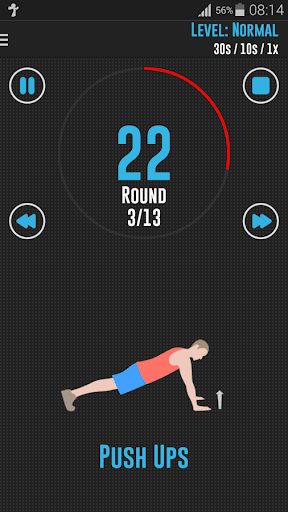 This fitness app is a variation of High Intensity Training (7 Minute Workout), whose origins lie in the known circuit training. After a warm-up different exercises to be completed in the prescribed time, all of which are extremely sweaty and exhausting.