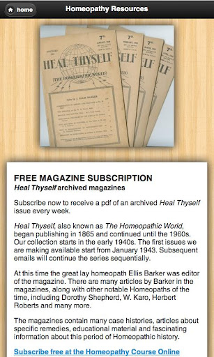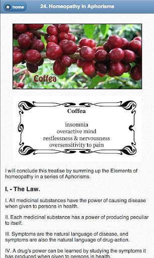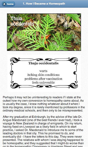 The app includes additional material, including illustrations and key symptoms of 24 plant based homeopathic remedies, one for each chapter of the book. There are also links to external homeopathic study resources.