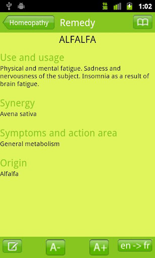 Homeopathy is an application of kind dictionary allowing to reference a set of practical and public information relative to homeopathy. It does not aim to cure you or to supply you a prescription but to enlarge your basic knowledge on the homeopathic medicine for the common diseases.
