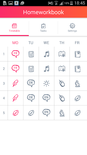 Clicking on the timetable logo will get you to your timetable. At first it´s empty but you can add your own lessons by tapping on the cell you want to change. You simply enter the subject and room in which you have class at a certain time.