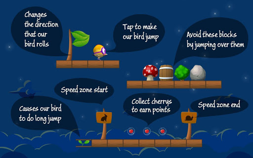 To prevent hunger, the hopping Bird needs to eat cherries in order to survive. Please help the cute bird by running and jumping across the level. Hopping Bird like to eat cherries but you have to overcome many obstacles like mushroom, rocks and trees that prevent hopping bird from eating his cherries. If you begin to play it, you will be addicted to it and fully immersed into the game environment. It's more challenging and fun than it seems!