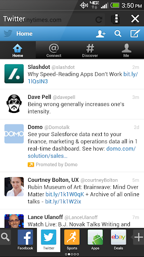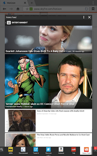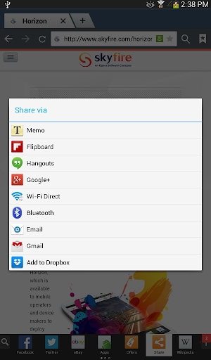 The Horizon Toolbar is loaded with features that make mobile browsing more social and useful than ever before. Stay connected, find deals, and discover apps while browsing on your mobile device – all without leaving the web page you’re on.