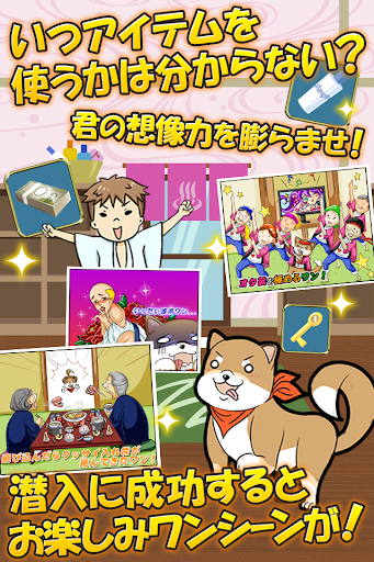 This time, you (a dog) is trying to sneak into several kinds of hot spring inn to find some meat!