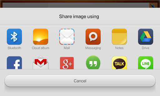 • Share your creation with friends via email, Facebook, Skype, Instagram, Picasa, Line, Messenger, Viber, WhatsApp, kakaoTalk etc.