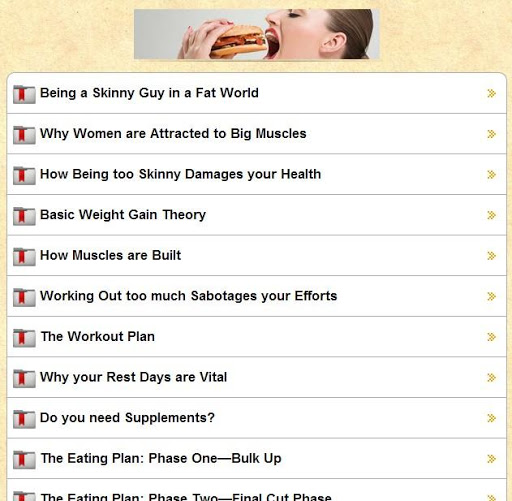 This app should be helpful for those who want build the body or even those who want the skinny guy savior. In any case, if you need to gain weight fast. This app might be for your best choice.