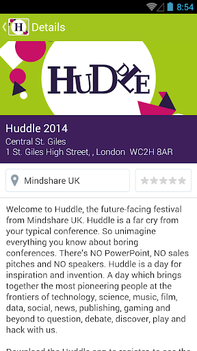 Download the app to register, to see the full schedule of Huddles, browse Huddler profiles, and create your personalised agenda.