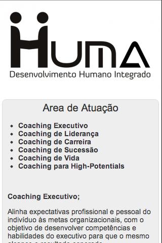 Informações sobre a empresa Huma - Desenvolvimento Humano Integrado, dados para contato por telefone, email e facebook.