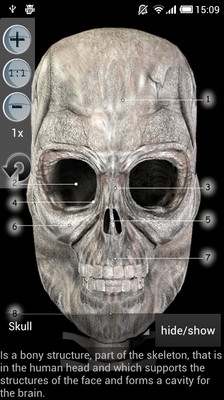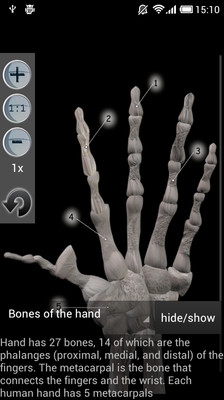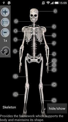 它给你的人类骨骼上的信息和图形。骨头图形可以旋转,以便您可以查看他们从不同的观点(虚拟叁维)。