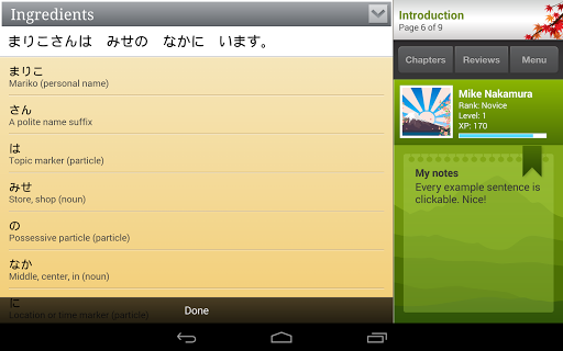 * Ingredients(TM) example sentence breakdowns on every example sentence for total clarity