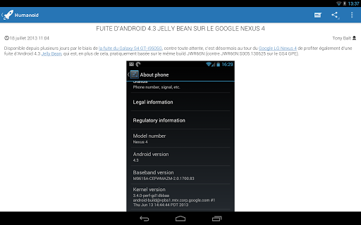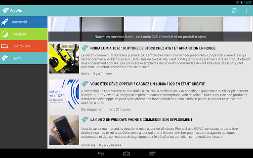 - Lecture des articles des différents sites de la galaxie Humanoid (FrAndroid, Frawin et iAddict)