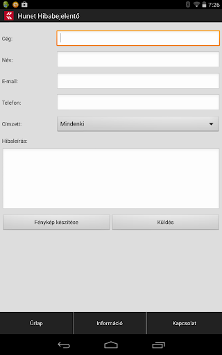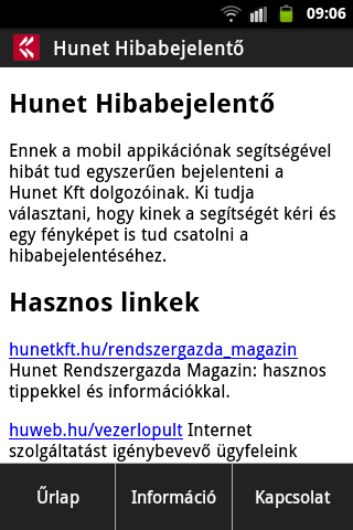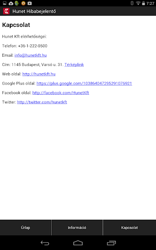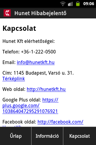 Az alkalmazásban információt talál a Hunet Kft elérhetőségeiről is.