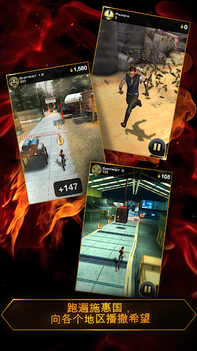 取材于 2013 年 11 月 22 日全球上映的电影《饥饿游戏:星火燎原》,这款手机游戏(The Hunger Games: Catching Fire – Panem Run)将无尽奔跑风格游戏带到新的社交高度,让玩家双手紧握游戏机就能体验电影的紧张刺激。这一迅如闪电的手机动作游戏系列是对影片中精彩动作和剧情的补充和扩展。