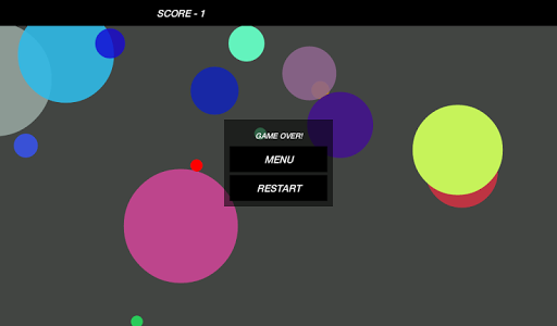 Hungry circle is a game in which you control the red circle which needs to grow by colliding with circles smaller than it and at the same time survive by avoiding the circles bigger than it.