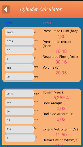 The Hydraulic Calculator covers: Cylinder, Pump, Motor and Power calculations in an easy to use format.
