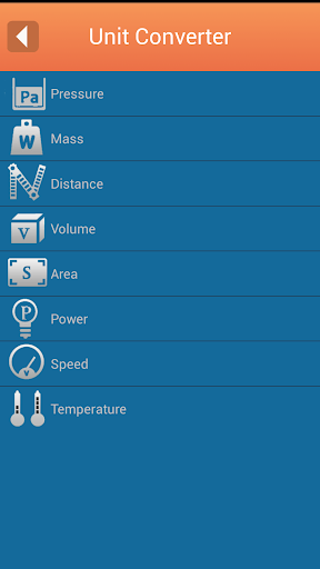 Units include: Pressure, Mass, Distance, Volume ,Area ,Power ,Speed and Temperature.