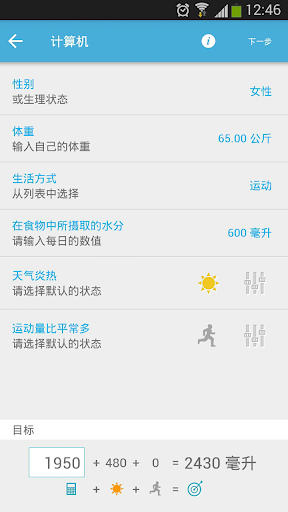 ★ 水分摄取量计算机 – 计算并建议你每日要达成的目标