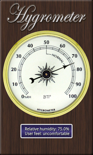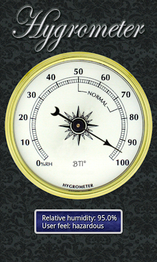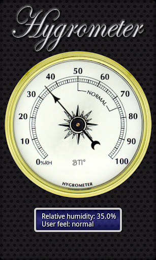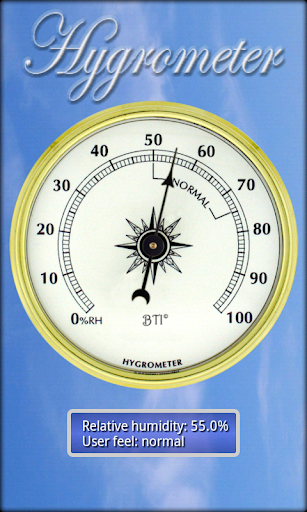 This app requires device with a humidity sensor. It uses humidity sensor data to give accurate and instant atmospheric relative humidity (moisture) reading in percents. Do not install or rate this app if your device does not have a humidity sensor.