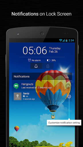 The HyperLock app has a sophisticated notifications management system, which allows you to have full control over every aspect of notifications. You can receive notifications on your lock screen. You can choose to have the whole message/notification seen on your screen or you can choose to only have the name and number displayed. You can have settings for do not disturb and privacy settings, which allow you to not receive messages during office hours etc. You can personalize this any which way you want.