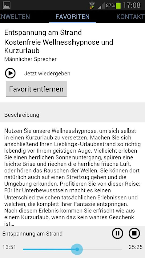 Diese Hypnosen sind lösungsorientiert und daher eine Selbstheilung unter Anleitung. Sie werden hier Strategien und Methoden erfahren, durch die Sie sich jederzeit selbst helfen können. Diese Anwendungen ausschließlich in einer entspannten Atmosphäre anhören. Die Anhörung ist nicht gestattet während der Autofahrt oder Arbeiten an Maschinen etc. Bei der Einnahme von Psychopharmaka, schweren psychischen Störungen oder der Neigung zu Krampfanfällen, befragen Sie vorher Ihren Arzt.