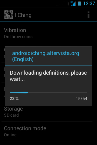 Allows to use a custom dictionary inherited from the default one to personalize the hexagrams interpretation. When put in offline mode, after a complete download, all dictionaries become accessible without the need of an internet connection.