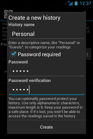 Readings can be saved in different histories and there is the possibility to password protect the access to those files. Otherwise, each section of the reading can be shared toward other applications that read HTML.