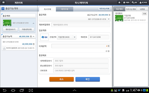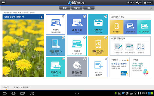 IBK, 기업은행, 은행, 개인스마트뱅킹, 개인, 스마트뱅킹, 태블릿, Tablet, 국민은행, 신한은행, 우리은행, 국민, 신한, 우리, ONE