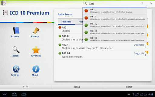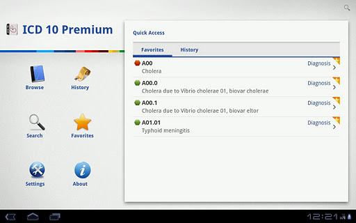 The 2011 ICD10-CM diagnosis codes are instantly searchable and also browsable by their traditional categories. Search by code or diagnosis, through the whole ICD10-CM or through just a category or selected nonspecific code. Images within the list indicate whether a code is specific or nonspecific. Tap to view the diagnosis and the full text of its standard ICD-9 long description and to add it to your Favorites list for immediate access later.