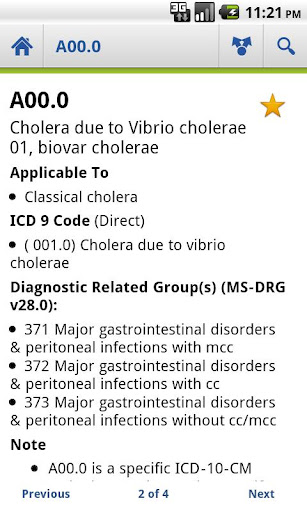 4. Distinguish specific from non-specific codes at a glance; tap a non-specific code to view its specific children. Navigate to its parent to quickly compare one specific diagnosis to another, ensuring you code for maximum reimbursement every time.?