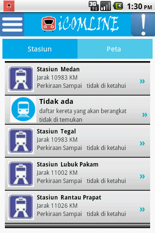 - tidak semua stasiun kereta berhasil di masukan kedalam database ofline icomline karena ada beberapa stasiun yang belum memiliki titik kordinat di google maps