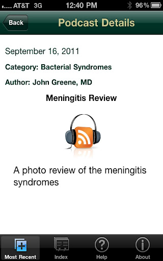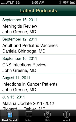 The premier infectious diseases remote learning resource on the web just got even more mobile with the ID Podcasts Mobile Viewer for Android Smartphones. Now enjoy dozens of infectious diseases medical podcasts streamed to your smartphone anywhere on the go. Podcasts may be viewed either via WiFi or your mobile broadband connection. Browse the most recent podcasts, or make a selection using the index, with podcasts categorized by title, author, or subject. For further information, please visit our website at http://www.idpodcasts.net.
