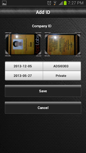 Instant notification – You will no longer need to remember the validity of your IDs with IDBuddy's alarm feature. IDBuddy will remember the expiration dates, and will even alert you when you need to renew your cards.