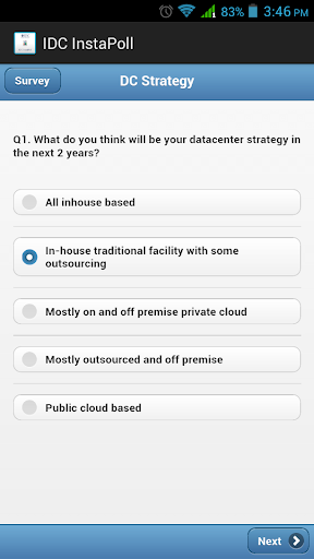 IDC InstaPoll is a business app designed to conduct real-time poll during its tech events around AP. It helps IDC engage with the event audience in a far more intimate manner, while building meaningful insights through surveys conducted with this tool.