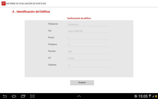 Aplicación oficial del Gobierno de Navarra para dispositivos móviles que permite cumplimentar el informe de evaluación de edificios (documento técnico relativo a un edificio, en el que se recoge información sobre su estado general de conservación, su grado de accesibilidad y su certificación energética).
