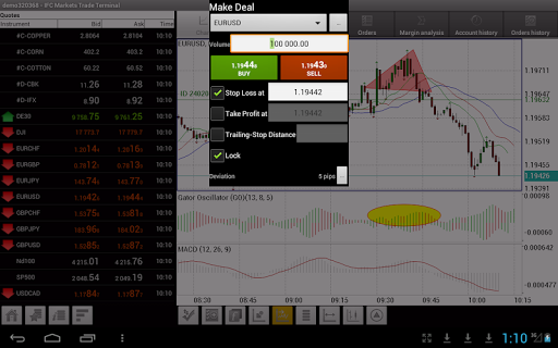 IFC Markets Trade Terminal is highly functional and convenient for every trader. The mobile platform enables all the basic functions of a full scale stationary platform, such as: