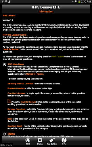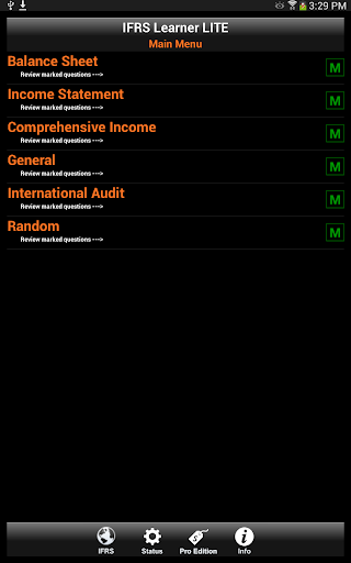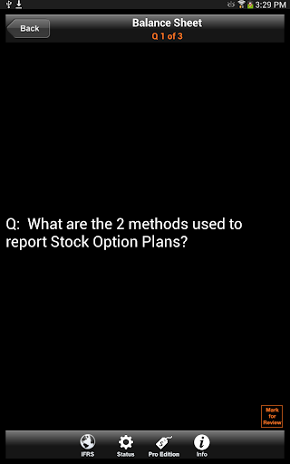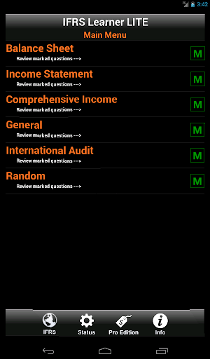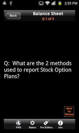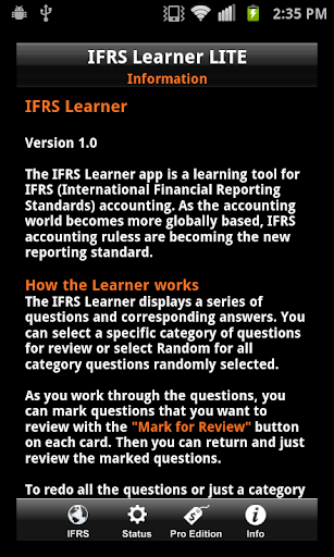 IFRS Learner has over 300 Flash Cards in the app to enhance your learning, with questions and answers to test your knowledge. There are four primary Flash Card areas or a Random selection of all Flash Cards.