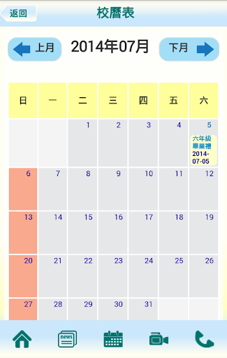 - 校曆:讓家長能隨時瀏覽學校重要活動的日期
