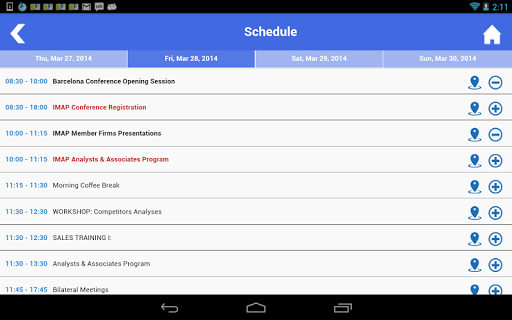 The IMAP Conference app gives the delegates access to events and schedule. The app can also help you: