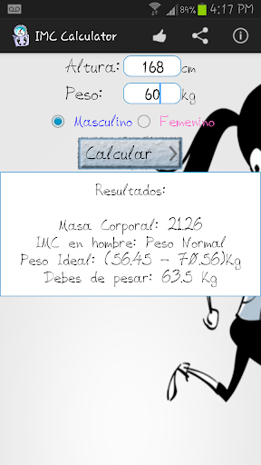 Calculadora de IMC (Indice de Masa Corporal), podrás calcular tu Masa Corporal, clasificación de IMC, Peso Ideal y lo que aproximadamente debes pesar según tu sexo.