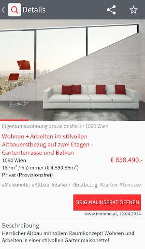 Mit der Android App von immmo.at können Sie nun auch von unterwegs bequem und schnell Ihre Immobiliensuche durchführen.