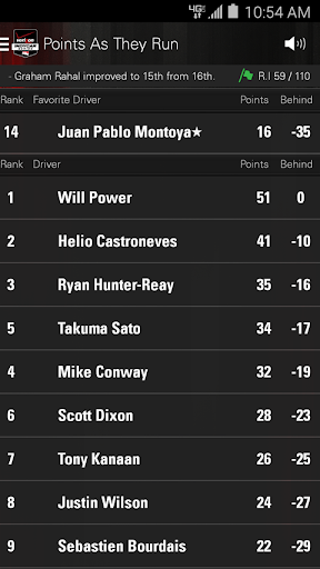 • Standings, race results, schedule, and race extras such as high-resolution track map images and spotter guides