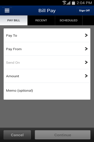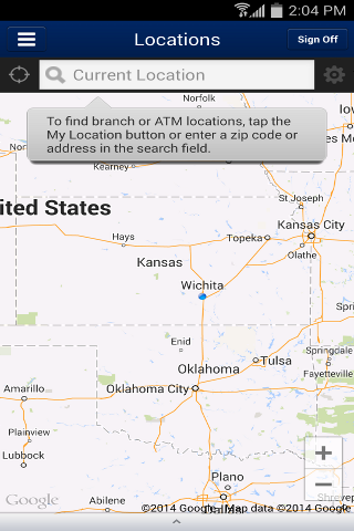 - Find nearby banking centers and ATMs using the device’s built-in GPS. You can also perform a search by zip code or address.