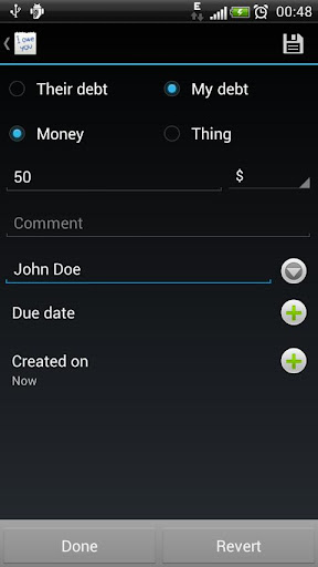 IOU (I owe you) is a debt manager app for things and money. Keep record of all personal debts, bills and loans in this single app. Material design UI coming soon!