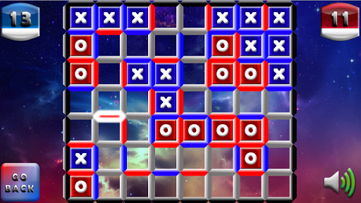 The goal is to complete, turn by turn, the largest possible amount of squares. On each turn the player has to add only one side of the squares forming the board. To win a square, the player must tap the last side of the square.